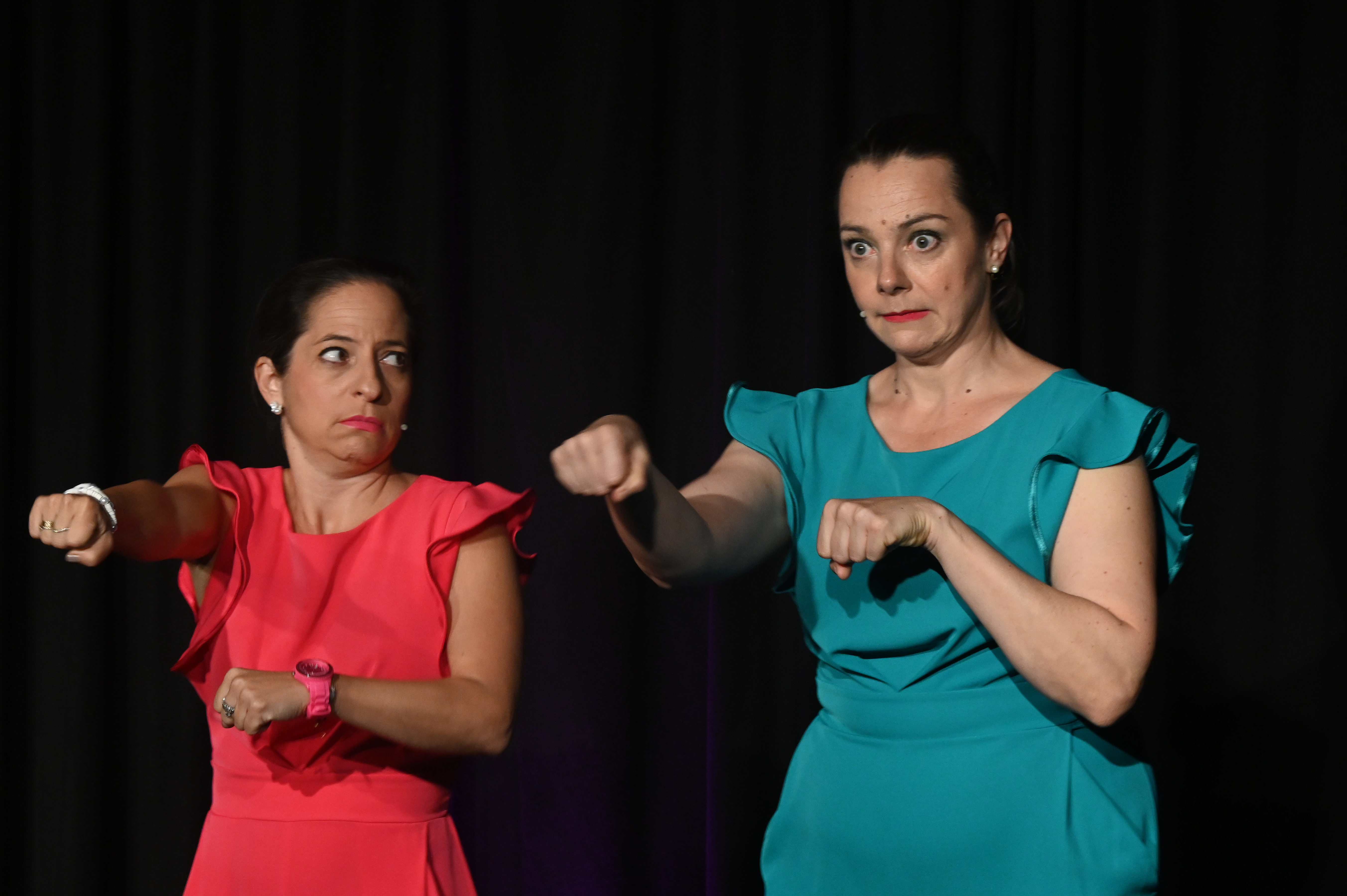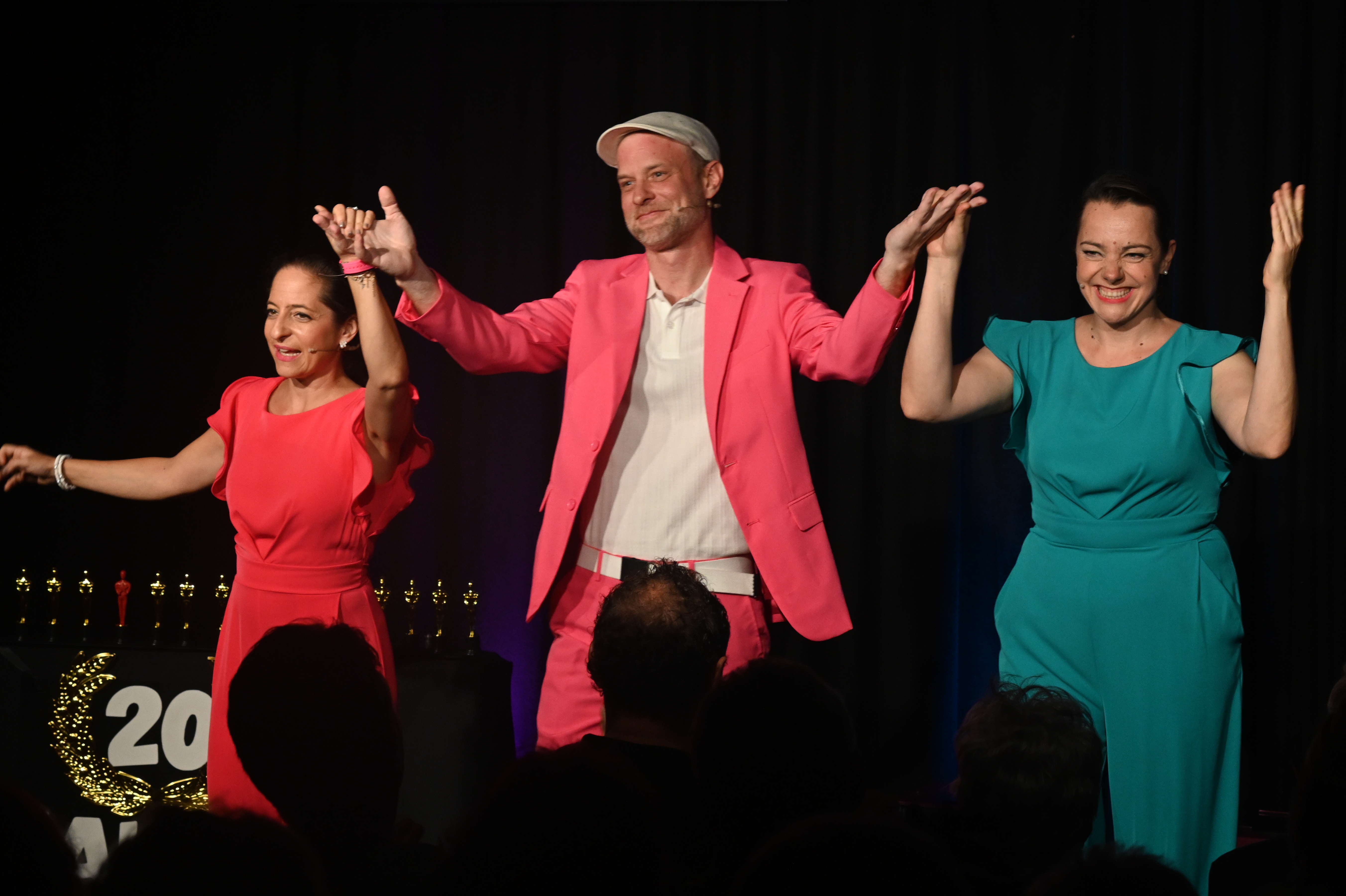 Eine Ehre war diese Vorpremiere. Zwei starke Frauen in starken Farben, Cerise und Türkis, steuerte ein begeistertes Publikum durch zwanzig Jahre Kernölamazonen.