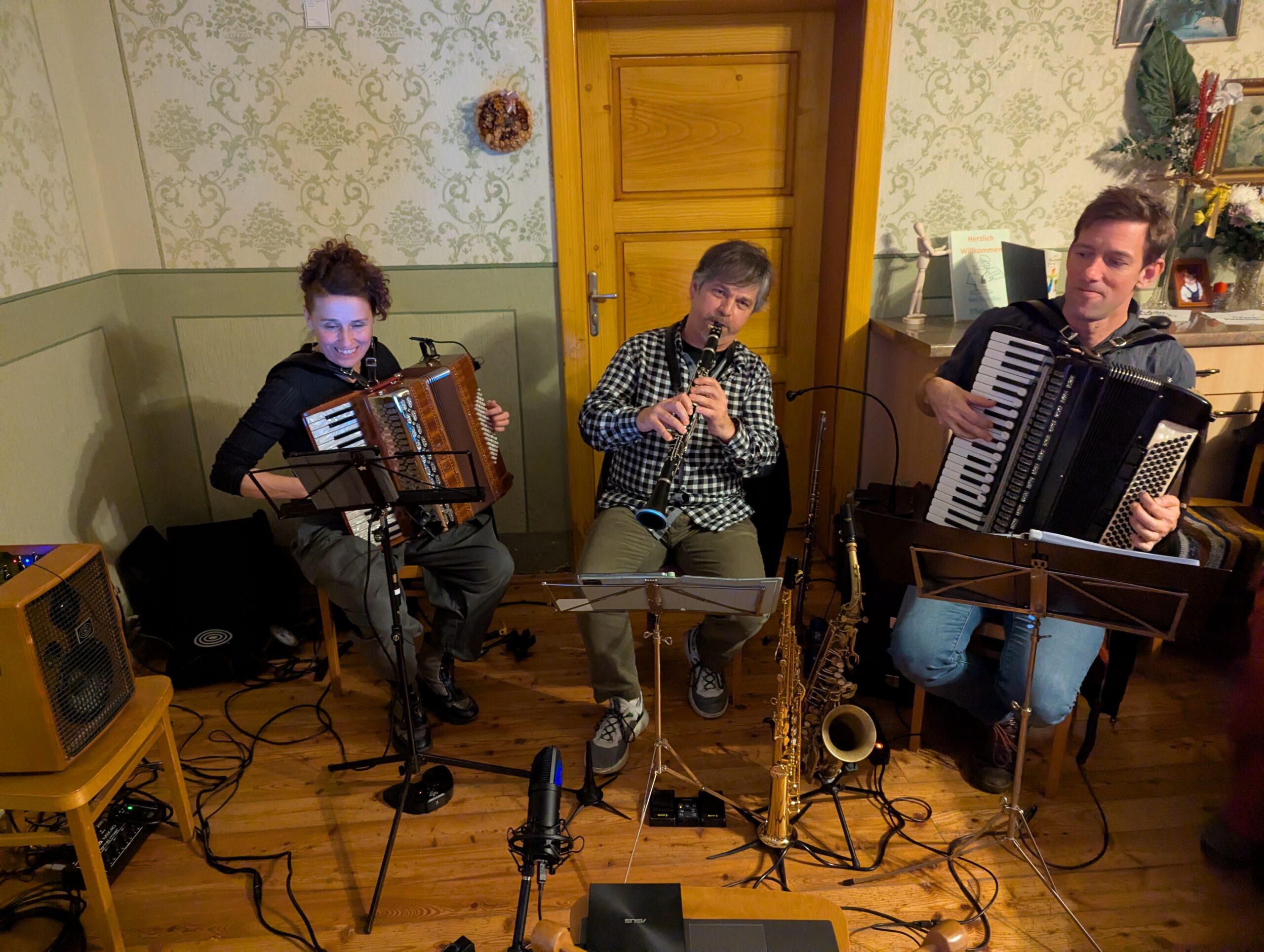 Franziska Hatz_ Akkordeon, Richie Winkler_ Klarinette, Saxophon und Tino Klissenbauer_ Akkordeon, haben am diesen Abend Charlie Chaplins Der Cirkus, aus dem Jahr 1928, mit frisch komponierten Tönen, musikalisch begleitet.